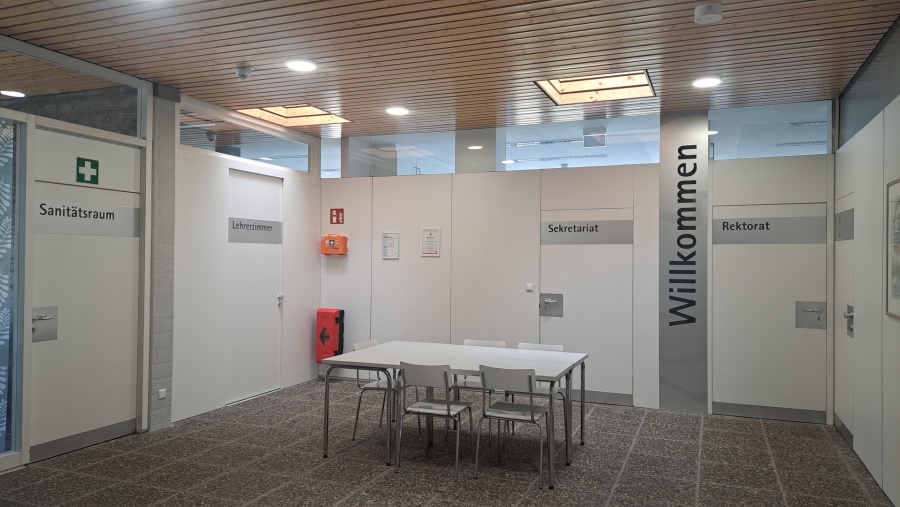 Das Lehrerzimmer, Sekretariat und Rektorat befindet sich im OG: